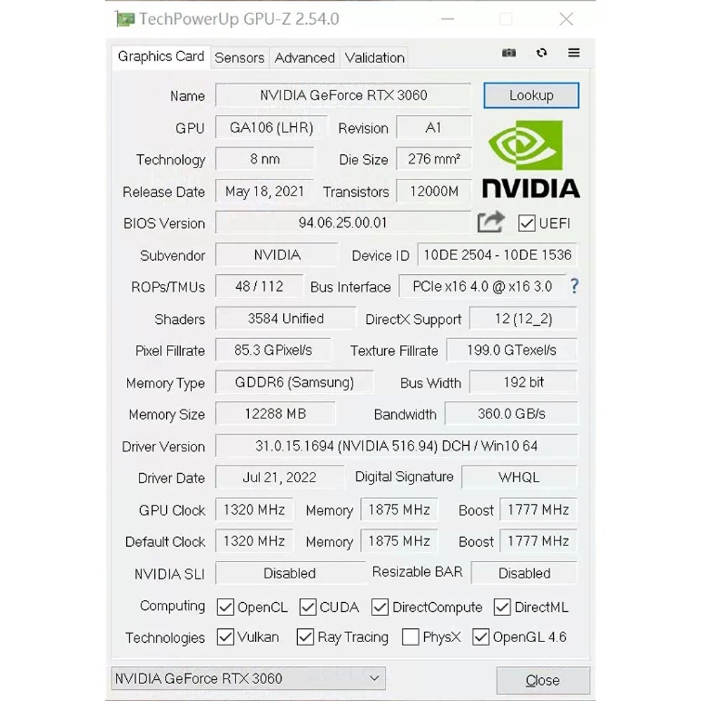 2024 New Gaming Graphics Cards NVIDIA GeForce RTX 3060 12GB GDDR6 192 Bit Desktop Computer Components RTX3060