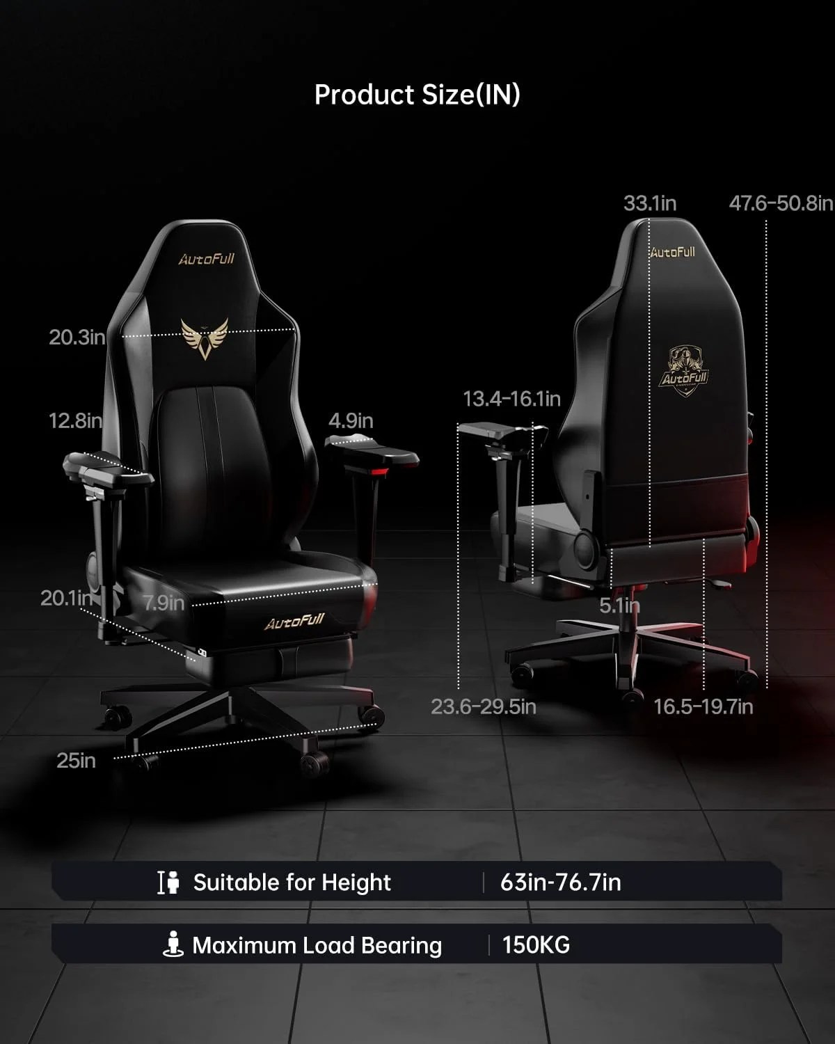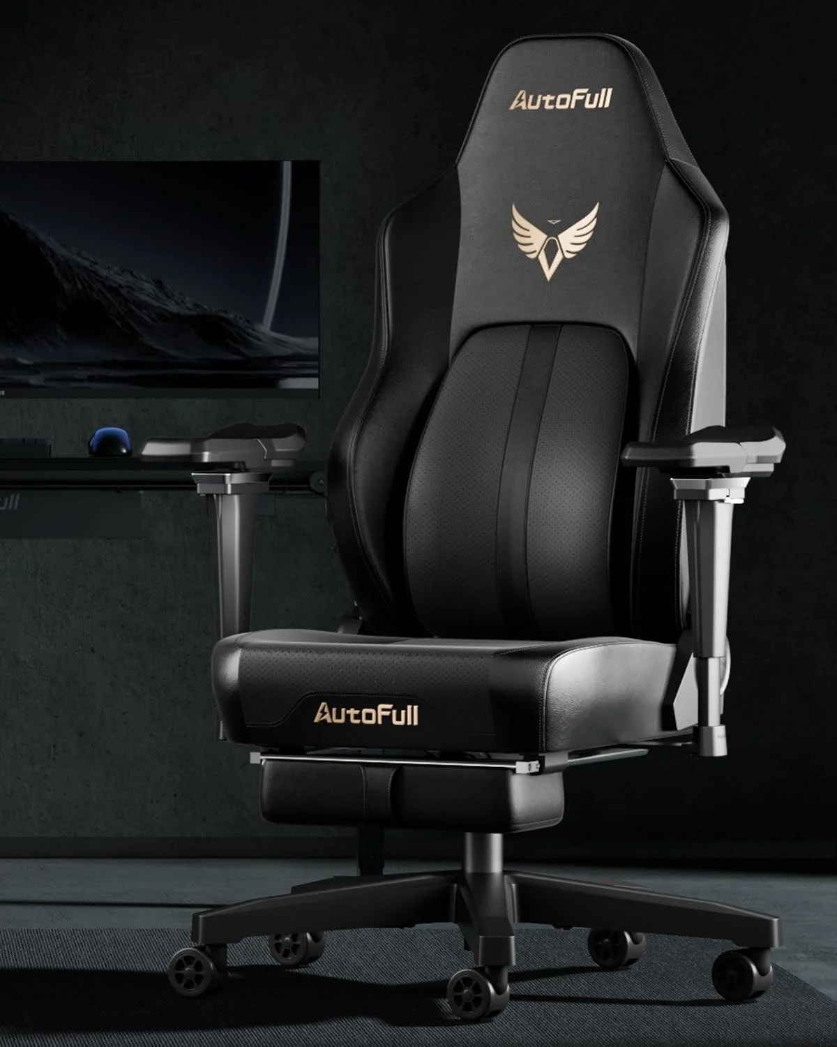 The AutoFull M6 Gaming Chair is designed for comfort and long-term support, featuring dynamic lumbar support that adjusts to your spine’s natural shape. It includes 6D adjustable armrests, a footrest, and headrest, allowing you to tailor the chair to your personal preference. Made from premium materials, this chair is built to last while providing a sleek black aesthetic that suits both gaming and office environments. Ideal for those who spend long hours sitting, it promotes better posture and enhances comfort.