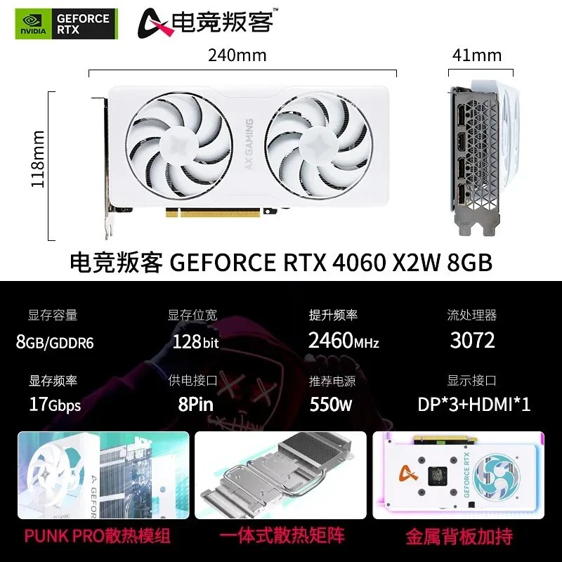 AX-Power By INNO3D GEFORCE RTX 4060 X2W 8GB GDDR6 Graphic Card Gaming GPU