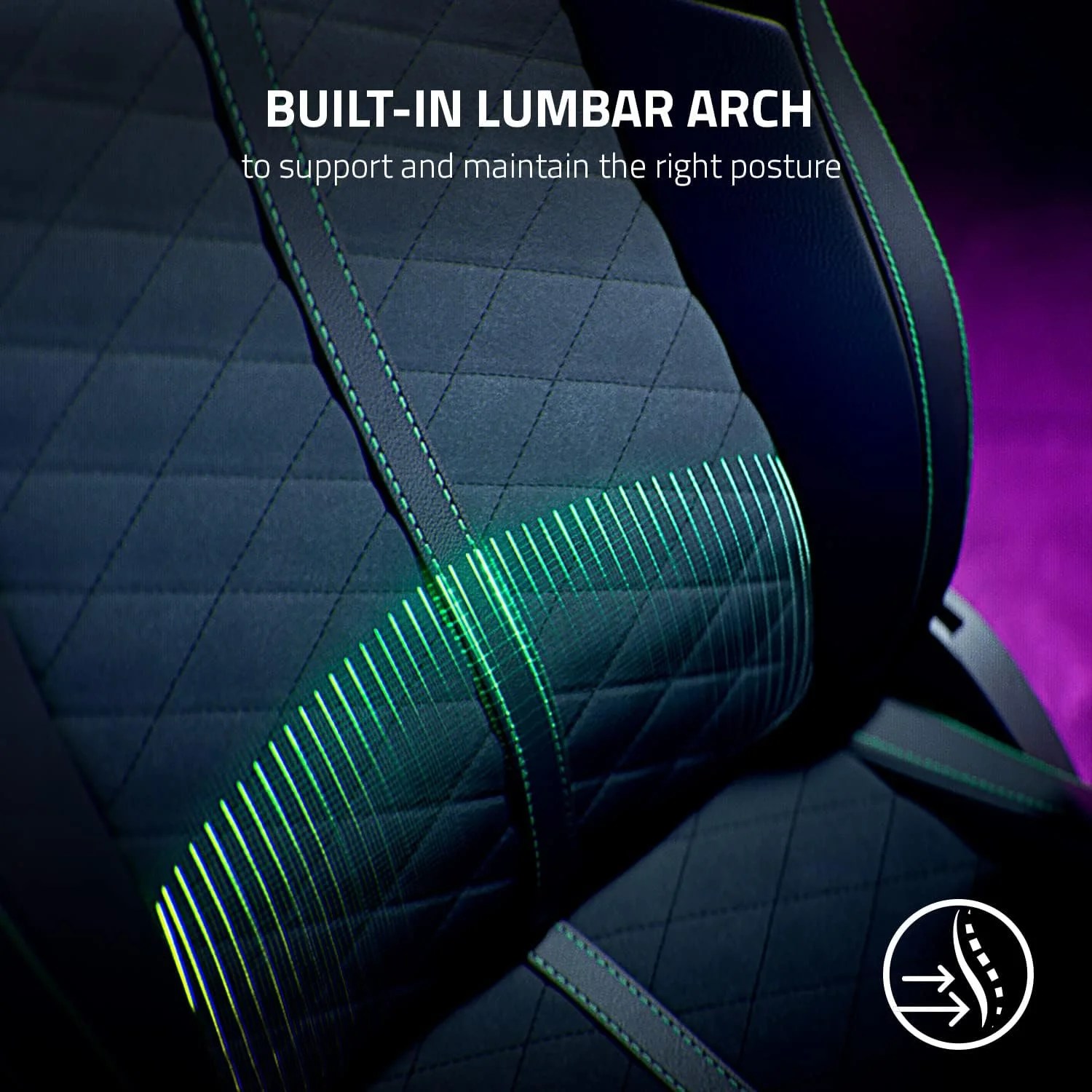 All-Day Comfort – Built-in Lumbar Arch – Optimized Cushion Density – Dual-Textured, Eco-Friendly Synthetic Leather – Reactive Seat Tilt & 152-Degree Recline – Black/Green