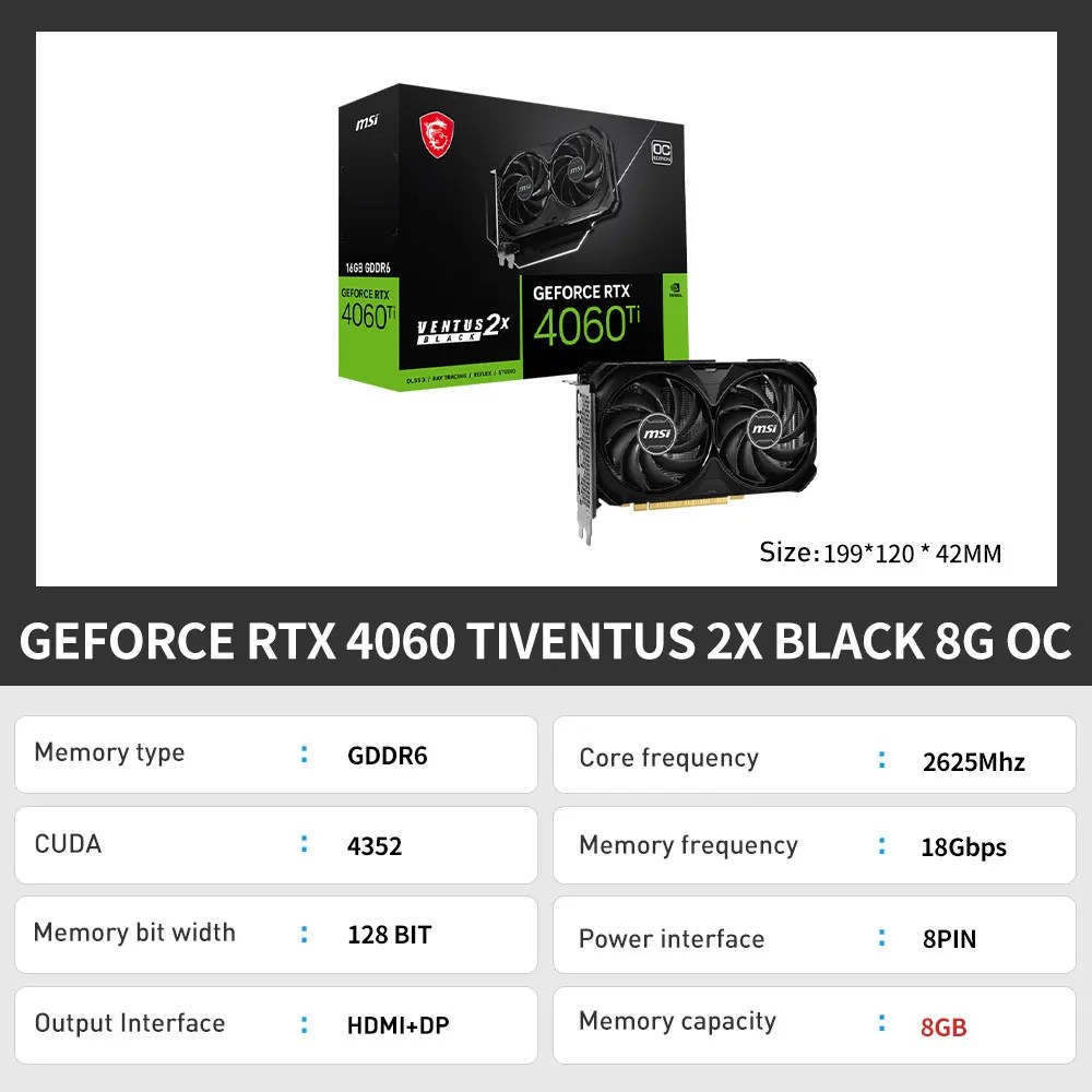 Buy MSI RTX 4060ti VENTUS BLACK 2X 8G OC Gaming Graphics Card 4060 4060ti rtx 4060 ti 128-bit GDDR6 8Pin 5nm Desktop placa de video at Aliexpress for . Find more , and products. Enjoy ✓Free Shipping Worldwide! ✓Limited Time Sale ✓Easy Return.