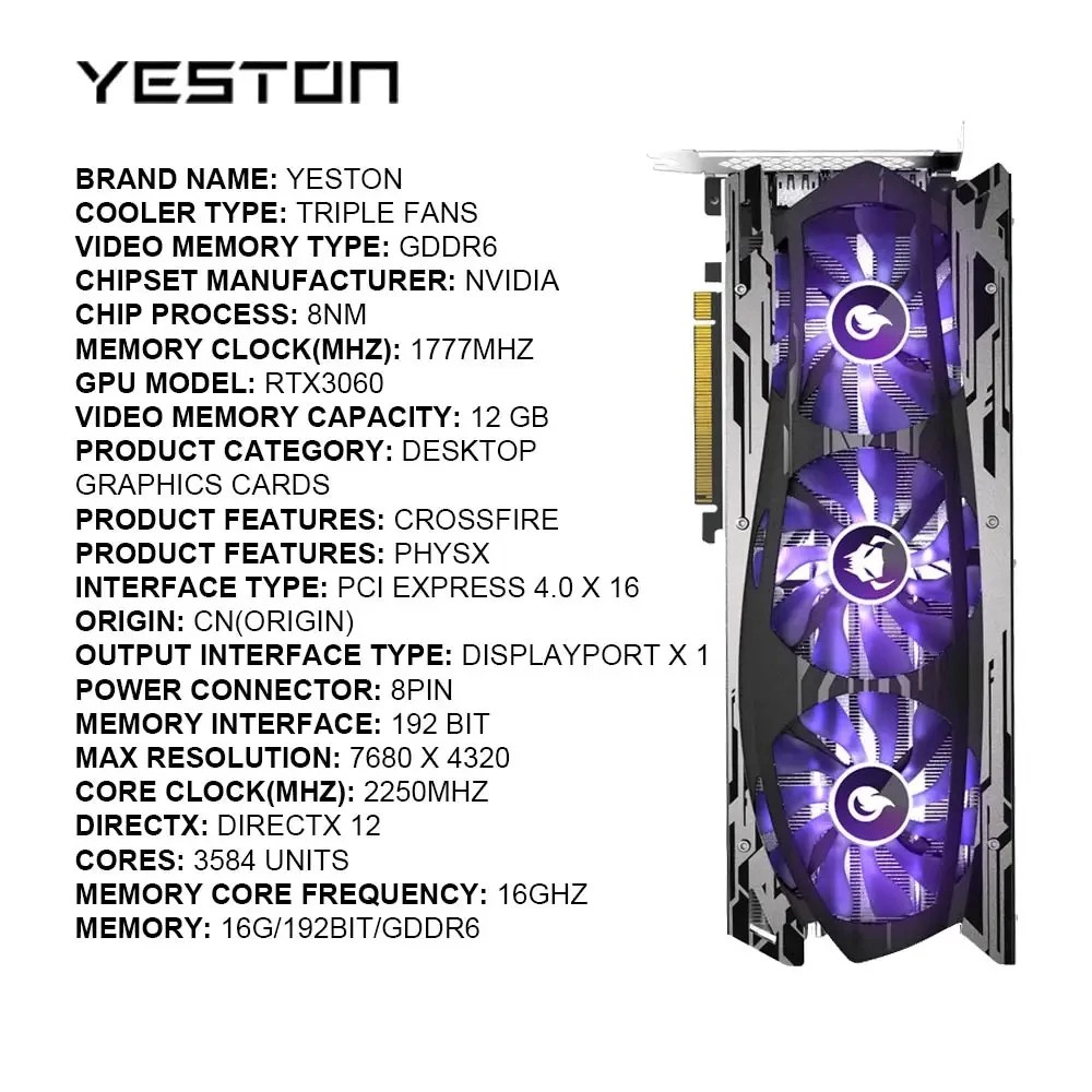 Used NVIDIA Graphics Card Geforce RTX 3060 12G placa de video 3060 GDDR6 192bit Video Card RGB Computer Desktop GPU RTX4 (2)