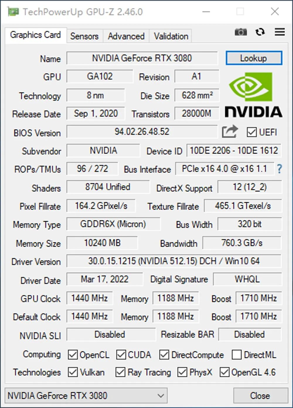 • GPU Model: NVIDIA Geforce RTX 3080 10GB RGB